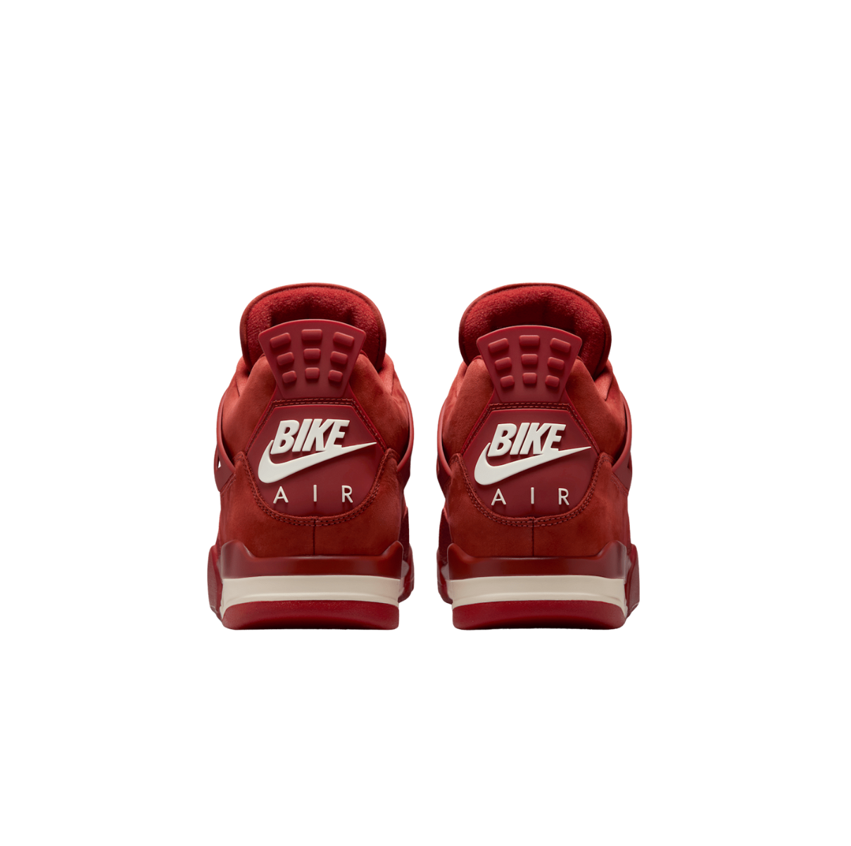 This Air Jordan 4 Retro sets up a fiery colour scheme, decked out in a bright orange leather upper. Burgundy accents highlight the netting, rubberised heel, and TPU lace cage to form a stark colour contrast. Jumpman logos decorate the Flight tongue tag, sockliners, and rear, replacing the classic Nike Air label that carries more prestige because of its affinity to OG colourways. A visible bubble in the heel provides ample shock absorption and cushioning, a setup tried and tested by the GOAT. Sail tones add a neutral flavour to the mix, breaking up the warm colour palette. Herringbone patterns ensure long-lasting traction on and off the pavement.