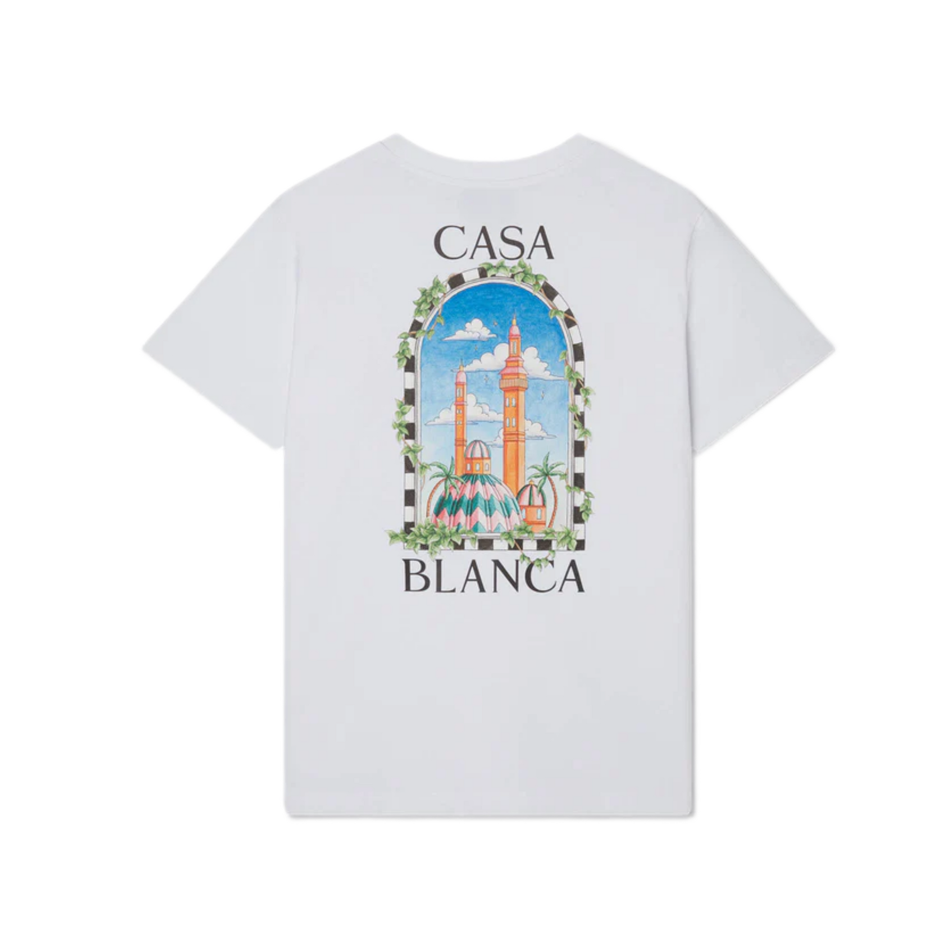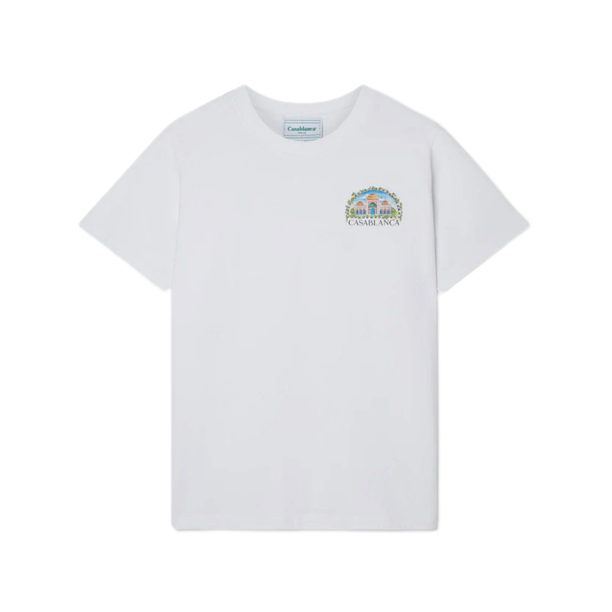 Explore the Casablanca Vue De Damas T-Shirt in White, a stunning piece that combines artful design with superior comfort. Made from high-quality materials, this T-shirt features a unique print inspired by the beautiful vistas of Damascus. Perfect for any occasion, the Vue De Damas T-Shirt adds a touch of elegance and sophistication to your wardrobe. Elevate your style with this exquisite piece from Casablanca.