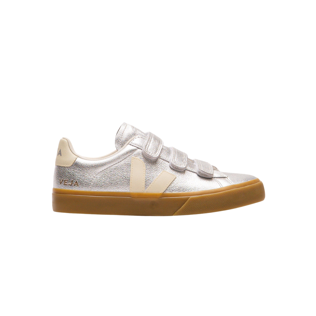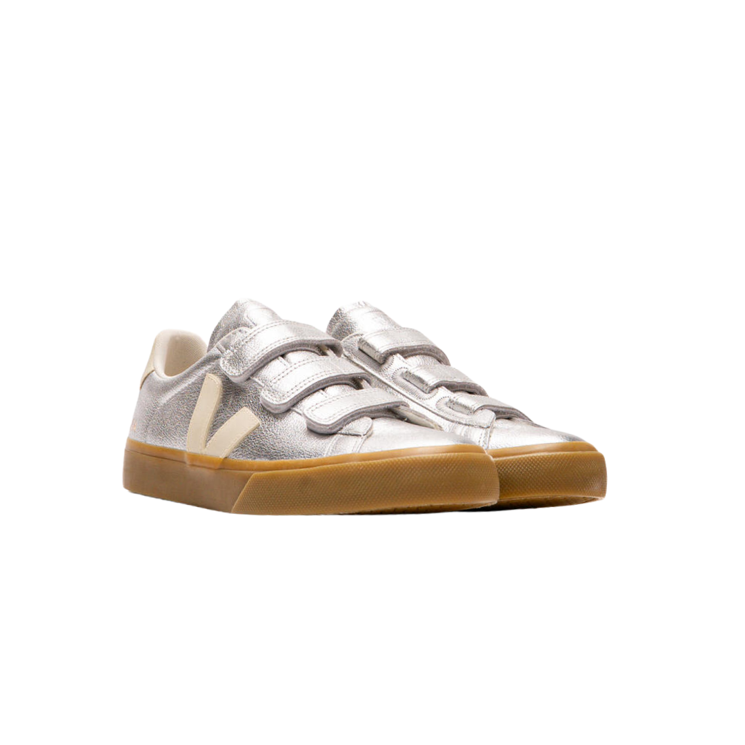 The Veja Women's Recife Silver Pierre sneaker is where sustainability meets sleek, everyday style. Crafted from smooth, eco-friendly , this velcro-strap design offers a clean, minimalist look with easy wearability. Its neutral tones and subtle branding make it a versatile choice for any wardrobe, while Veja’s commitment to ethical production ensures you’re stepping lighter on the planet. Chic, conscious, and effortlessly cool it’s modern footwear done right.